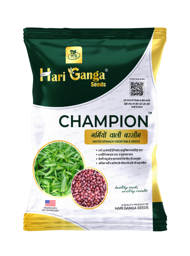 हरी गंगा चैंपियन (गर्मियों वाली बरसीम) एक लंबी अवधि और बहु-कटाई क्षमता वाली बरसीम की किस्म है, जिसे फरवरी से जुलाई के महीने तक लगाया जा सकता है। यह बरसीम पशु-चारे के लिए वरदान है। इस किस्म की 8-10 कटाई 6 महीने तक हरा चारा देने में सक्षम है।
